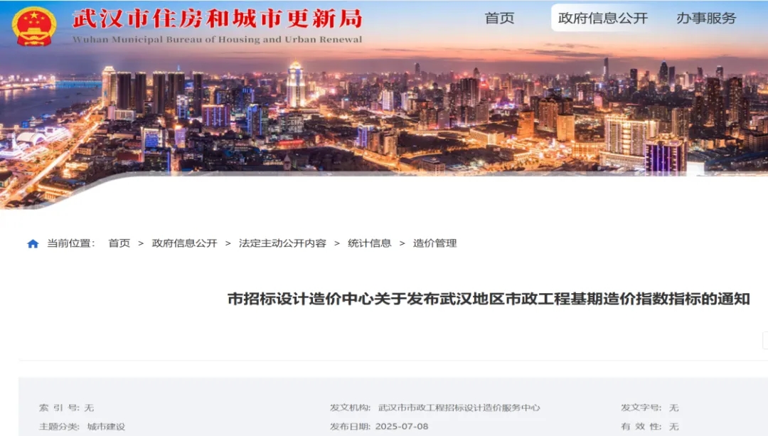 ? ? 近日,武漢市住房和城市更新局官網(wǎng)發(fā)布了《市招標設計造價中心關于發(fā)布武漢地區(qū)市政工程基期造價指數(shù)指標的通知》,標志著武漢市成為全省首個發(fā)布市政工程指數(shù)指標的地區(qū)。本造價指數(shù)指標由武漢市政工程招標設計造價服務中心和武漢市政院共同編制完成。
