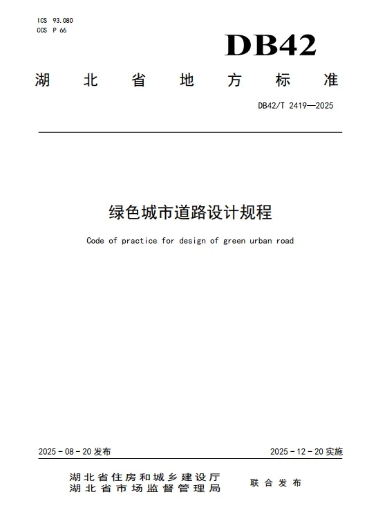? ? 近日,由武漢市政院主持編制的湖北省《綠色城市道路設計規(guī)程》(DB42/T 2419-2025)地方標準,經(jīng)湖北省住房和城鄉(xiāng)建設廳、湖北省市場監(jiān)督管理局聯(lián)合批準發(fā)布,將于2025年12月20日起正式實施。該標準是公司聯(lián)合行業(yè)多家單位,歷時三年深入調研國內(nèi)典型城市綠色道路建設實踐,系統(tǒng)總結湖北省實踐經(jīng)驗的重要成果。