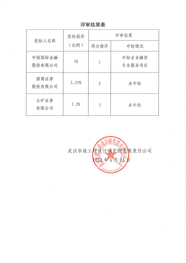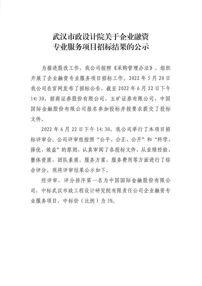 關(guān)于企業(yè)融資專業(yè)服務(wù)項目招標(biāo)結(jié)果的公示