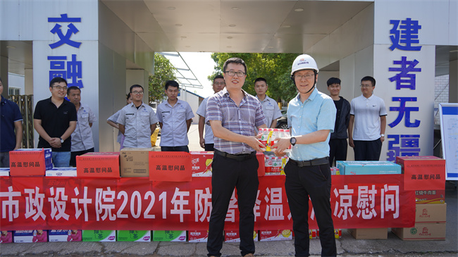 公司領(lǐng)導(dǎo)先后來到長(zhǎng)江新城諶家磯再生水廠工程、湯遜湖污水處理廠尾水排江工程總承包項(xiàng)目、環(huán)湖中路排水工程測(cè)量、龍王嘴污水處理廠、青山海綿城市等項(xiàng)目現(xiàn)場(chǎng),詳細(xì)了解項(xiàng)目進(jìn)展情況、高溫防暑措施和疫情防控情況,并為堅(jiān)守崗位的員工們送上高溫慰問品,感謝他們?cè)诔鞘薪ㄔO(shè)中做出的積極貢獻(xiàn),叮囑他們做好防暑降溫和個(gè)人防護(hù),注意勞逸結(jié)合,在保證項(xiàng)目按期推進(jìn)的同時(shí)務(wù)必保證個(gè)人的安全與健康。