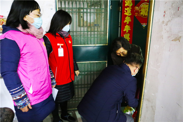 慰問期間,恰逢社區(qū)正在開展“臘八送福·甜蜜相伴”活動(dòng),談逢陽(yáng)一行也加入其中,熱情地為前來的社區(qū)居民發(fā)放臘八米,送上殷切的節(jié)日祝福,叮囑他們要做好防護(hù)。